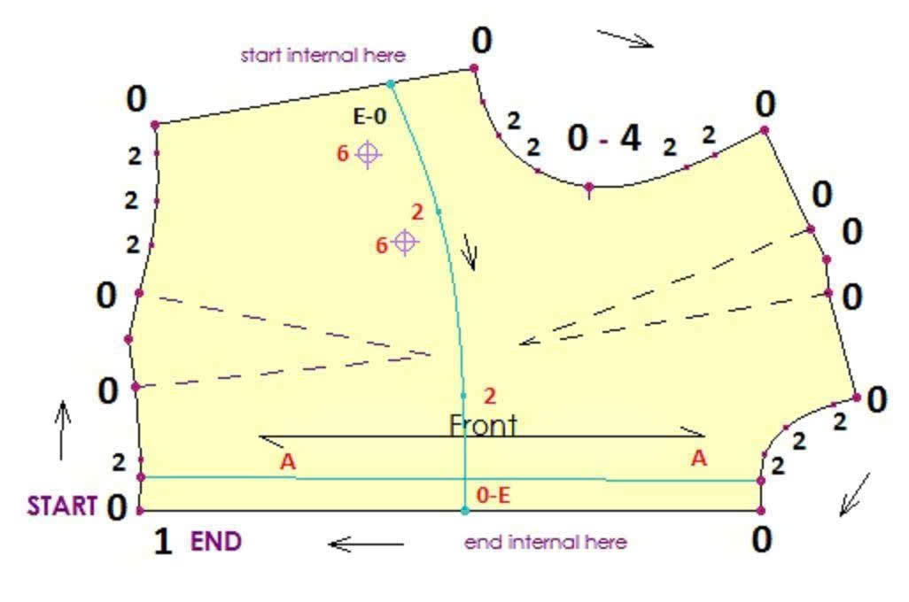 Đây là các ký hiệu chuẩn trong Digitalizer Optitex để phần mềm nhận diện đường viền, trục và ký hiệu của chi tiết rập.