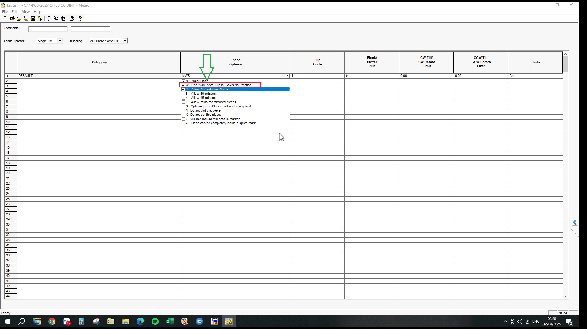Bước 2: Kiểm tra quy định trải vải (layslimit)