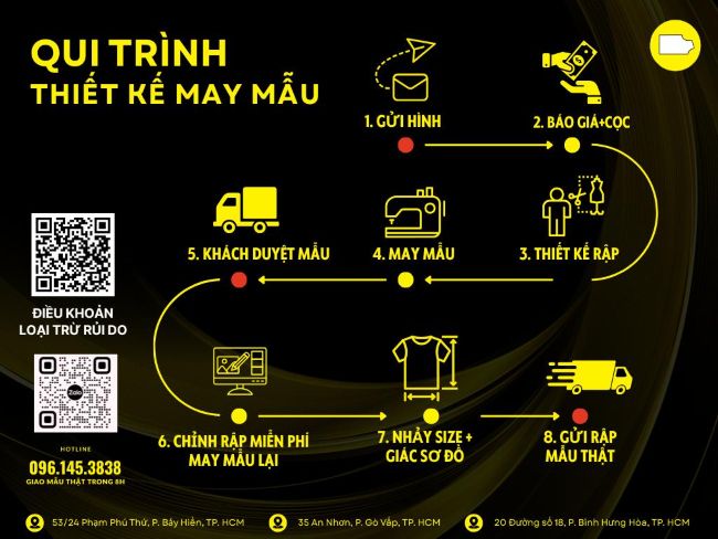 – Bước 1: Gửi hình mẫu sản phẩm qua Zalo 096.145.3838 cùng thông số kỹ thuật (size, số đo mong muốn, các yêu cầu thêm/bớt chi tiết).